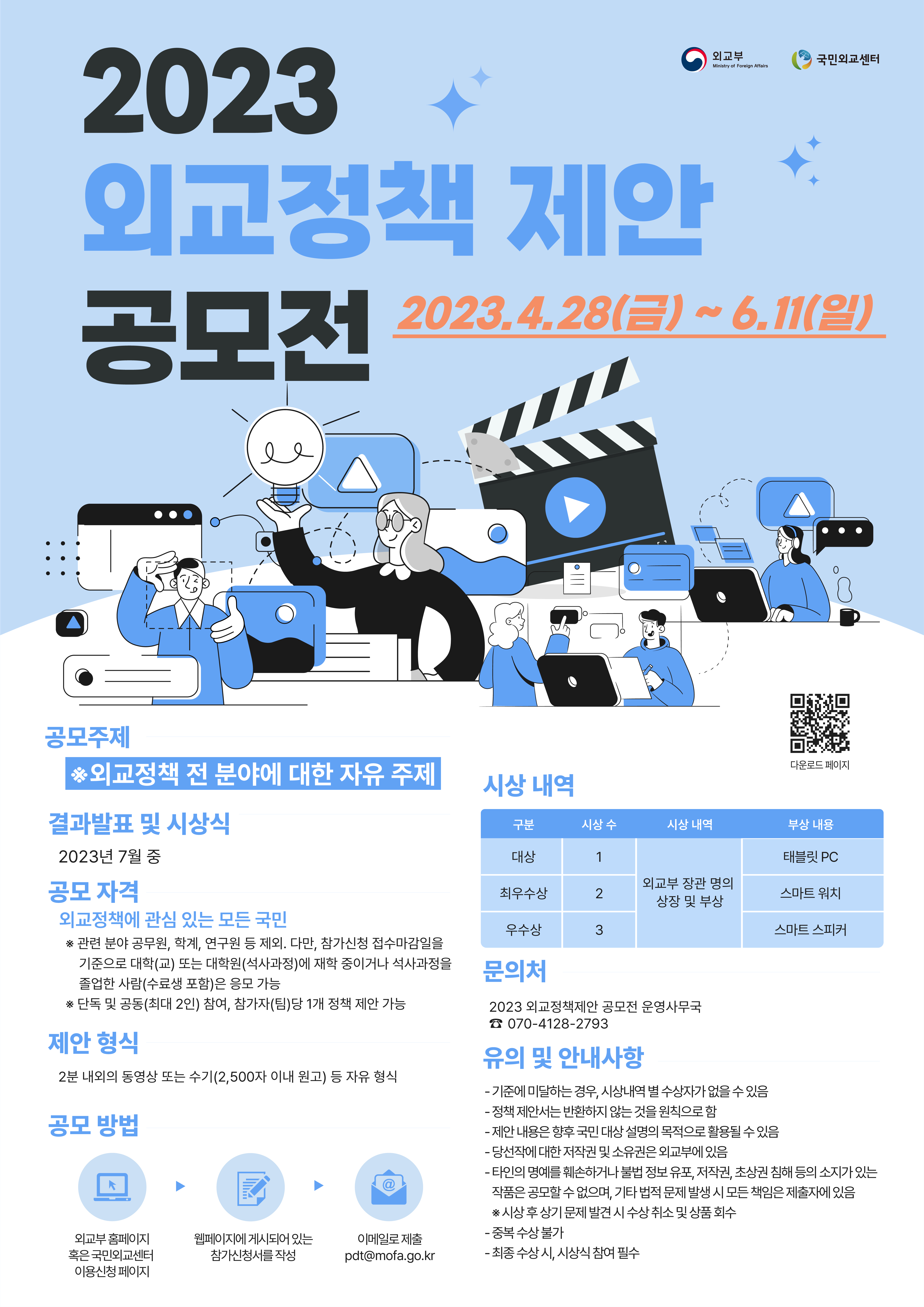 외교와 국제 문제에 관심 있는 학생들은 외교정책 제안 공모전에 적극 참여해주시길 바랍니다.