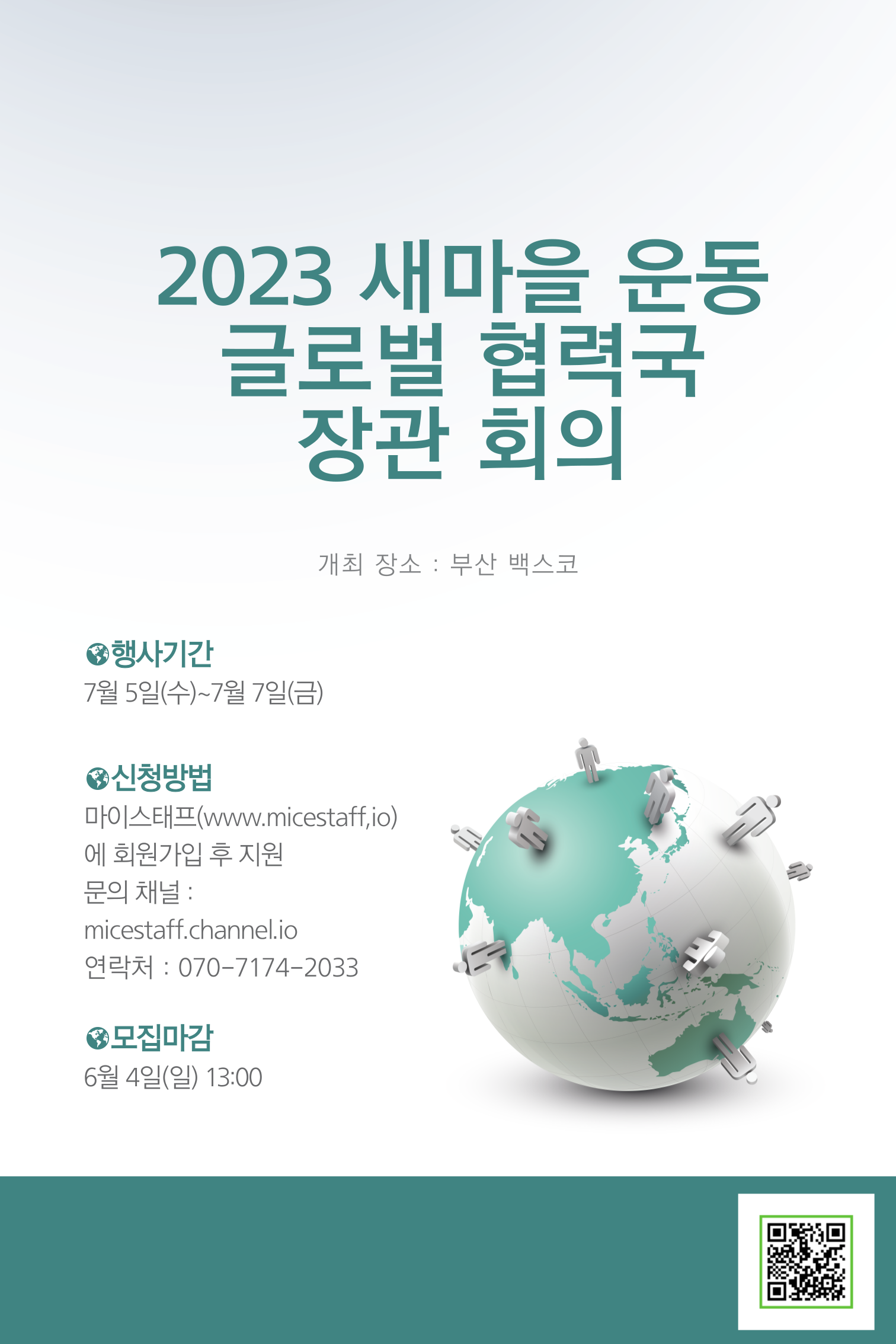 7월 벡스코에서 개최되는 장관급 국제행사에 참여할 운영요원을 모집하고 있습니다.