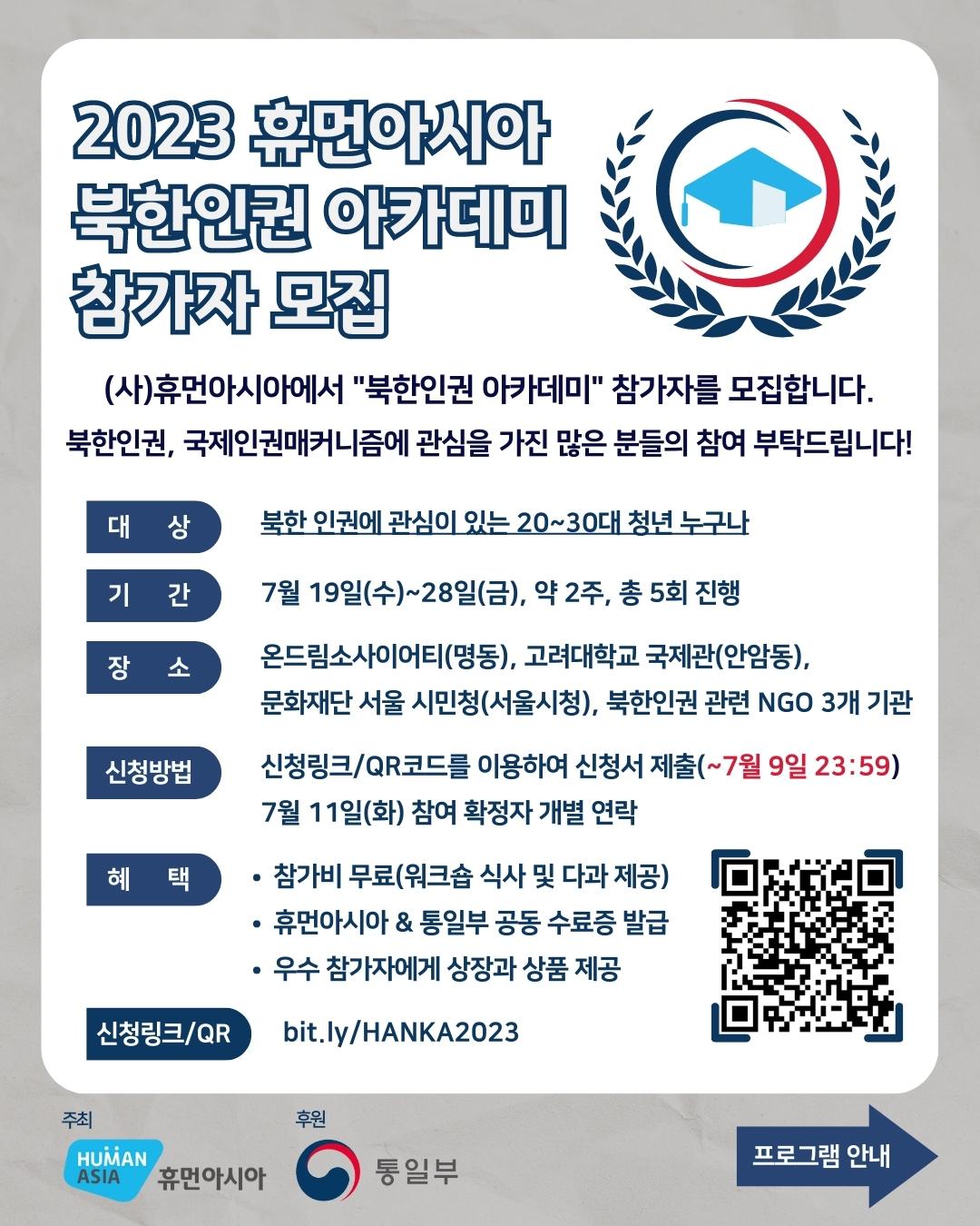 북한인권 아카데미 참가자 모집 공지사항: http://humanasia.org/bbs/board.php?bo_table=notice&wr_id=255
