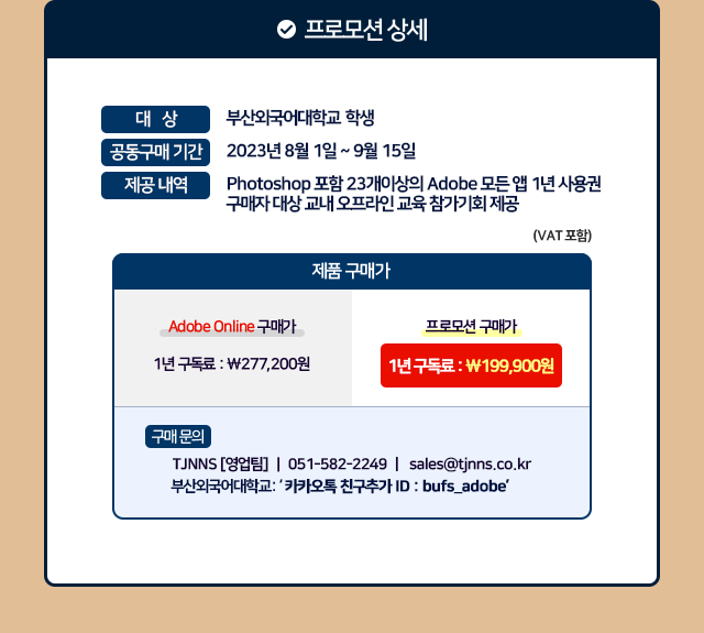티제이앤앤에스에서 부산외국어대학교 Adobe 학생용 라이선스 공동구매를 추진합니다.